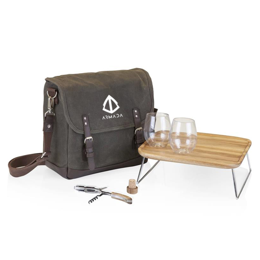 Insulated double wine tote with deluxe service for two.