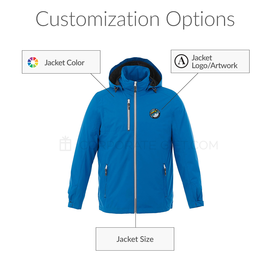 $55 one-time setup fee. Price includes jacket and an embroidered imprint in one location. A virtual mock-up will be sent out for approval prior to processing.