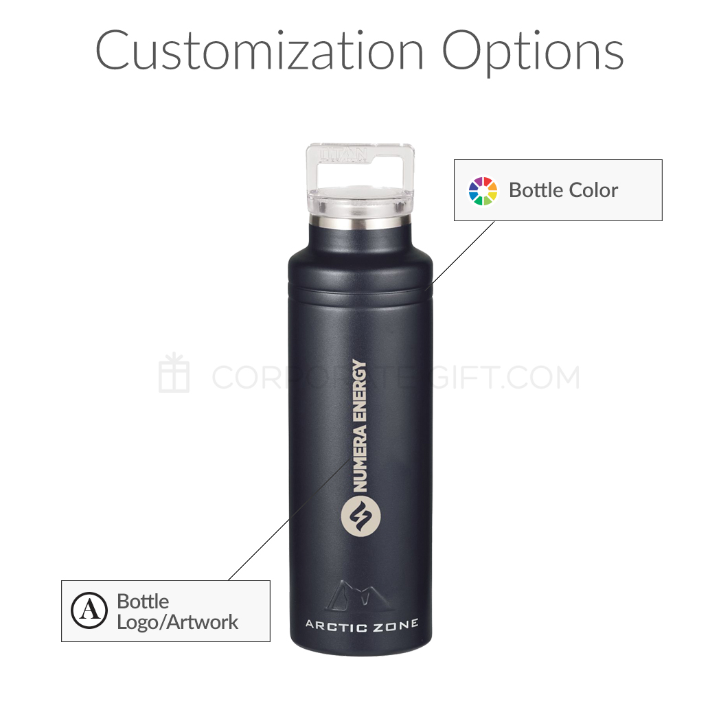 The Arctic Zone Titan Thermal HP Copper Bottle 20oz features a wide mouth for easy opening, filling, and cleaning. Its double-wall copper vacuum construction is designed to keep your favorite beverage hot for 12 hours or cold for 48 hours. Customize this spill-proof thermal bottle with laser engraving to add a distinctive personal touch.