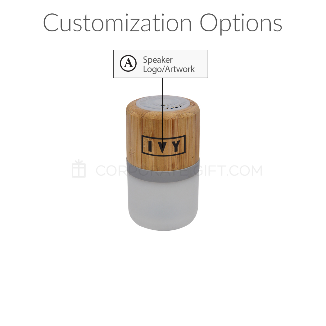 Delight your business partners and associates with a light up speaker that sounds as good as it looks! Designed to bring a sense of zen to desks, bookshelves or night stands, this speaker comes in a sleek bullet shape with bamboo accents and a soft interior light. Wirelessly pairs with any bluetooth enabled device from up to 30 feet away and comes with a USB charging cable. Finish the look with your choice of custom logo for a branded gift everyone will want to get their hands on.