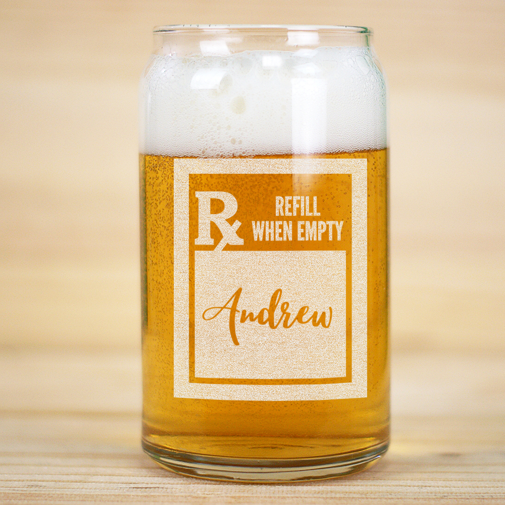 Beer Can Glass - 16 oz. (Engraved Prescription RX with Name)