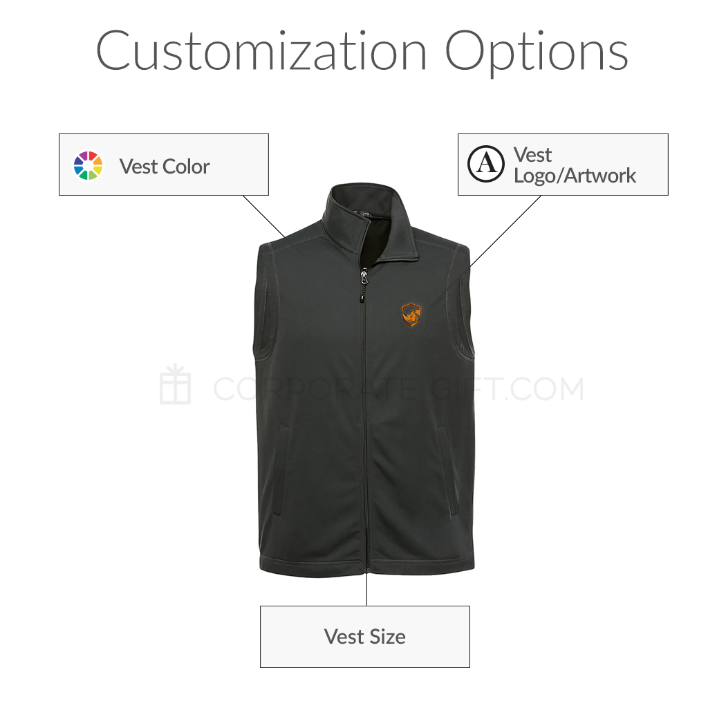 $55 one-time setup fee. Price includes vest and an embroidered imprint in one location. A virtual mock-up will be sent out for approval prior to processing.