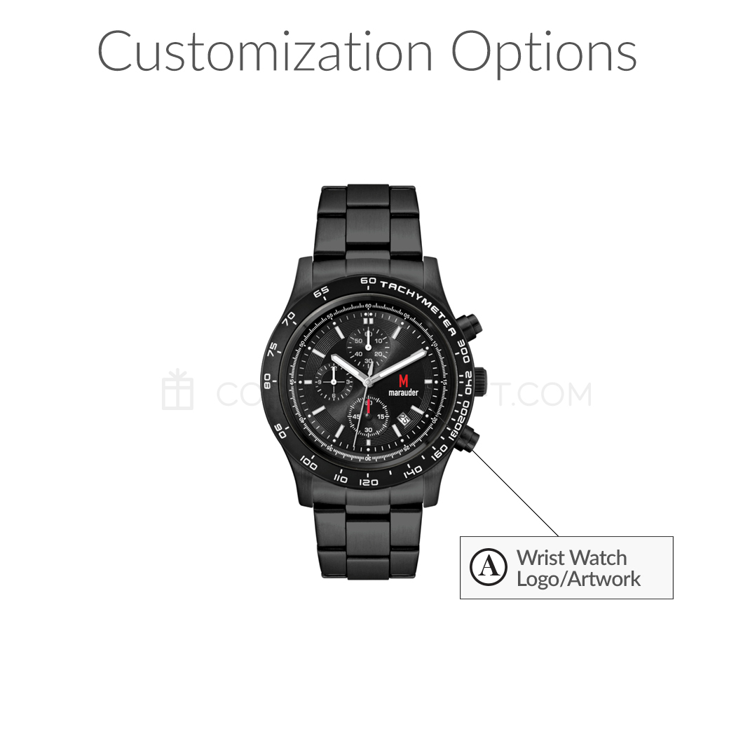 $85 one-time setup fee. Price includes watch and a one-color imprint in one location. A virtual mock-up will be sent out for approval prior to processing.
