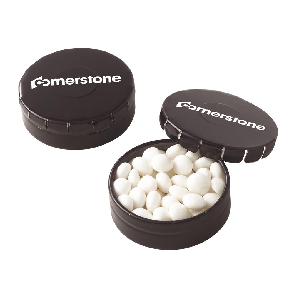 Put your brand in the pocket of your favorite business associates, clients, and coworkers with this slide-top candy tin! They'll receive your choice of candies or mints in a mini-sized tin emblazoned with your custom logo. It's a sweet way to say thanks!