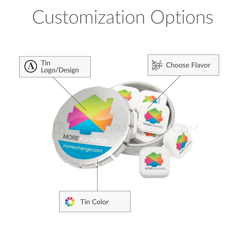 $60 one-time setup fee. Unit price includes your choice of fill, tin color and custom logo on lid.