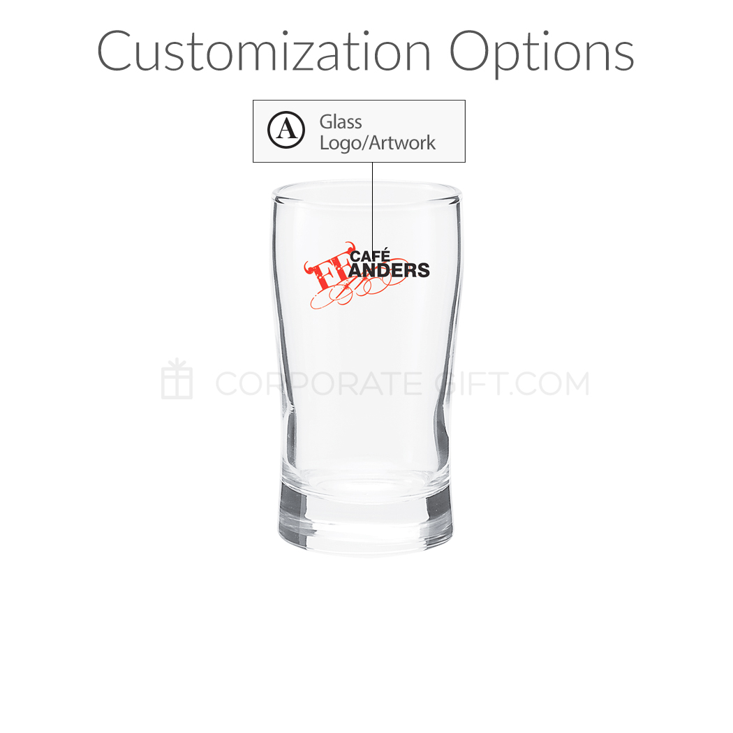 $65 one-time setup fee. Price includes glass and a one-color imprint in one location. A virtual mock-up will be sent for approval prior to processing.