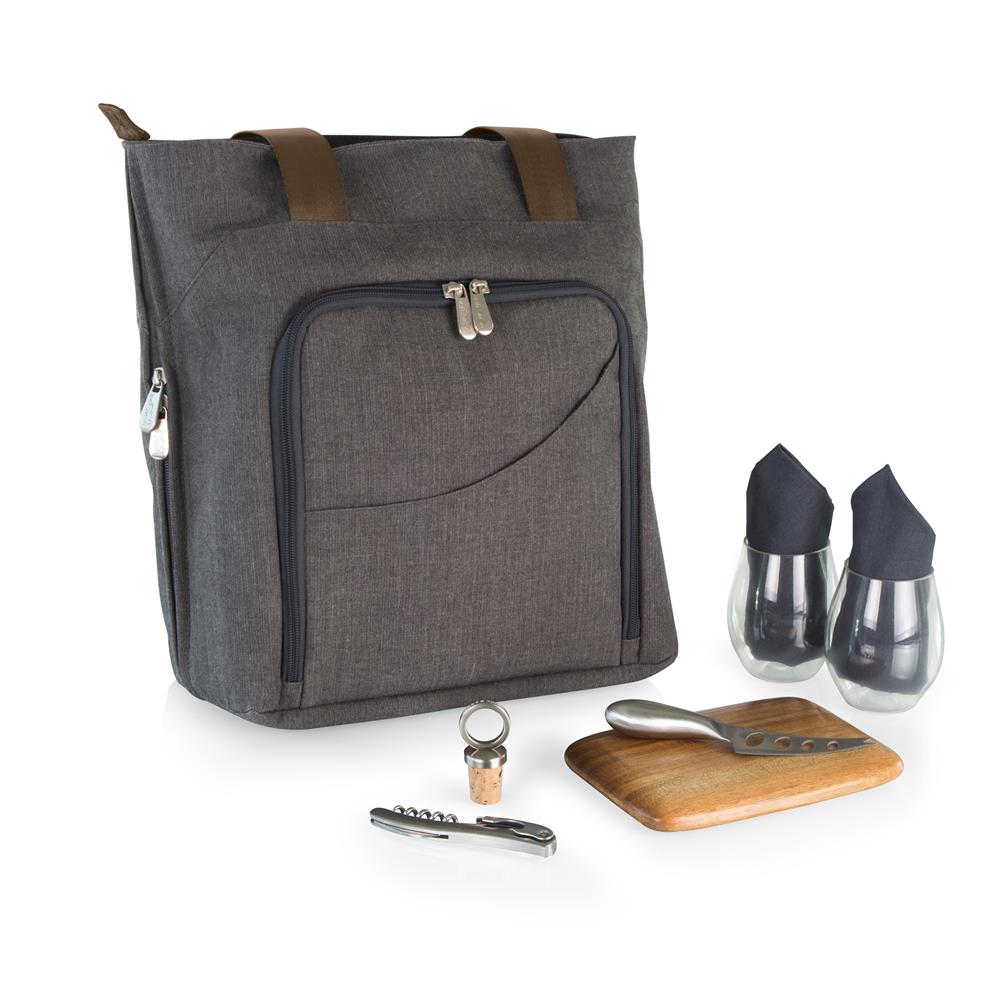 It was an old school picnic date in the park, enhanced by the decidedly hip wine bag you brought along. Of course, with its luxurious wine and cheese service for two, the Sonoma Wine and Cheese Picnic Tote is really more of a wine set than a wine bag. Way to go, Romeo, your date was duly impressed when you opened the Sonoma's front zippered pocket to reveal 2 shatter-resistant stemless wine glasses, 2 napkins, a corkscrew and cheese accessories.