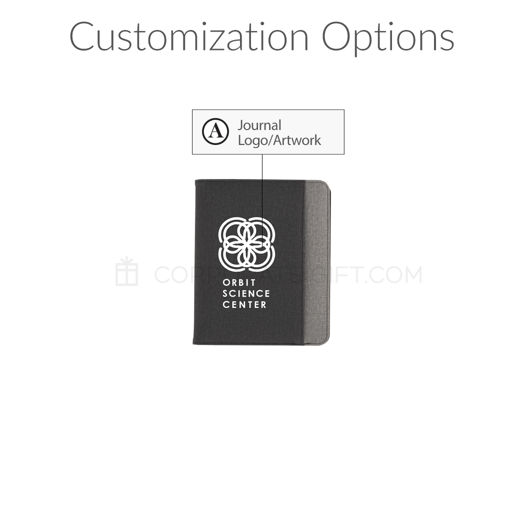 $95 One-time Setup Fee. Price includes wireless charging journal and your choice of custom logo. A virtual mock up will be sent out for approval prior to processing.