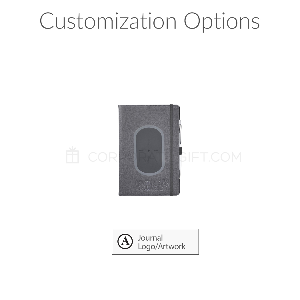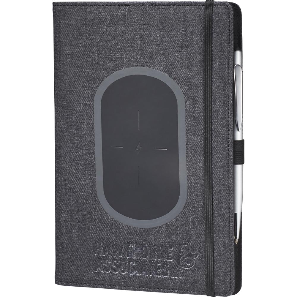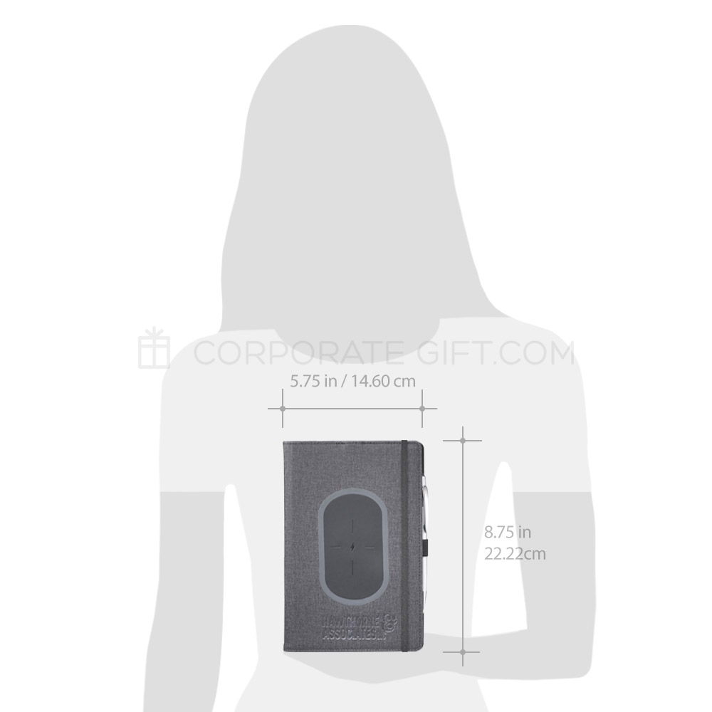 Your business associates and co-workers are sure to appreciate the versatility and convenience this JournalBook provides. They'll be able to wirelessly charge their smartphone while they take notes during business meetings or calls with this sleek and attractive notebook. Includes elastic closure and pen loop. This wireless charging journal supports the following platforms: iPhone 8/8Plus/X/XS/XS Max/XR, Samsung Galaxy Note5/S6/S6 Edge/S6 Edge+/S7/S7 Edge/S8/S8+/S9/S9+/Note 9, Google Nexus 5/6/7, HTC Droid DNA, 8X, LG G3/G4, Lucid 2/3, Nokia Lumia 920/930.