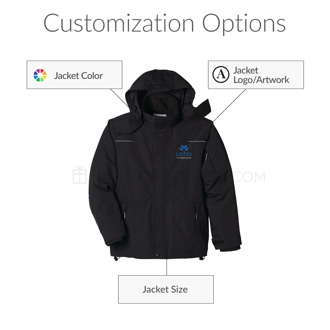 $55 one-time setup fee. Price includes jacket and an embroidered imprint in one location. A virtual mock-up will be sent out for approval prior to processing.