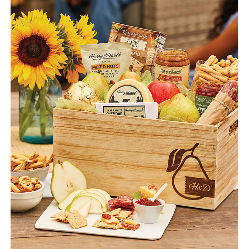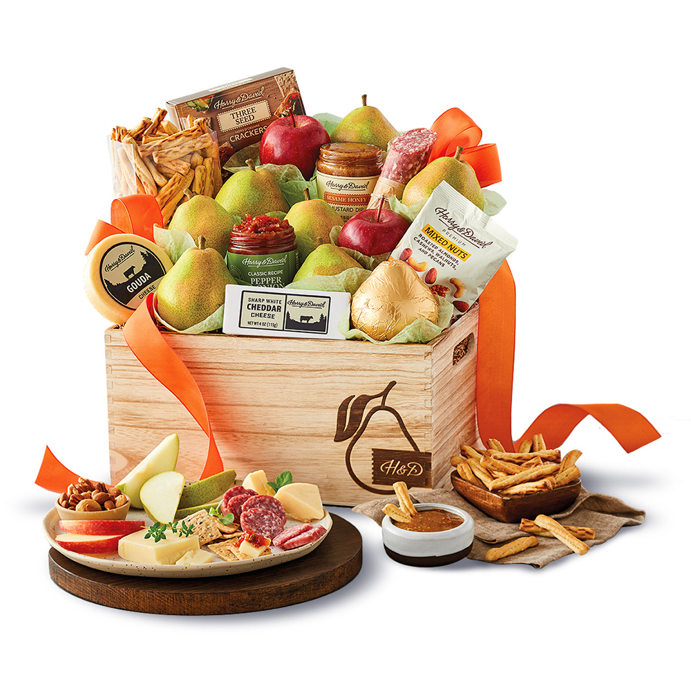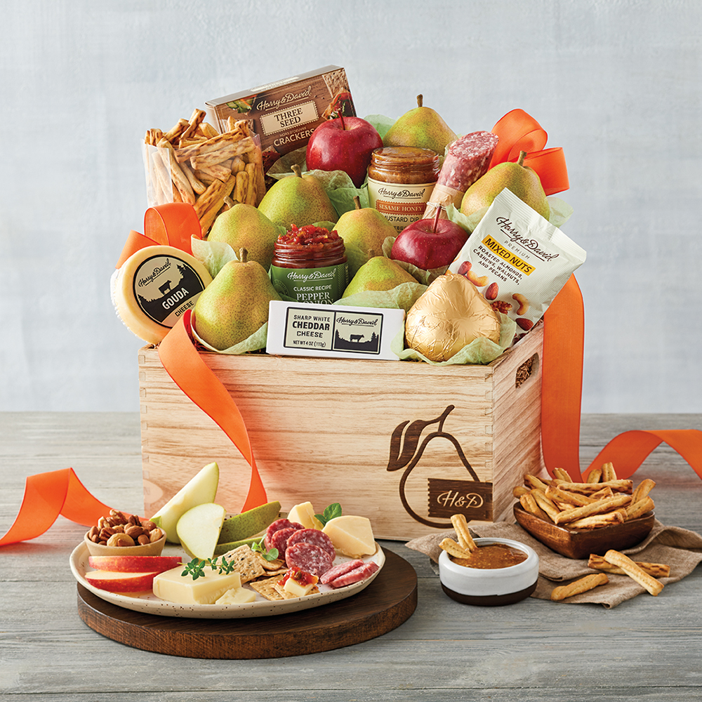 This magnificent gift of gourmet favorites is one of Harry & David's most popular gifts. The collection starts with juicy, sweet premium pears and crisp apples. An assortment of tasty treats such as artisanal cheese and dry salami rounds out the selection.