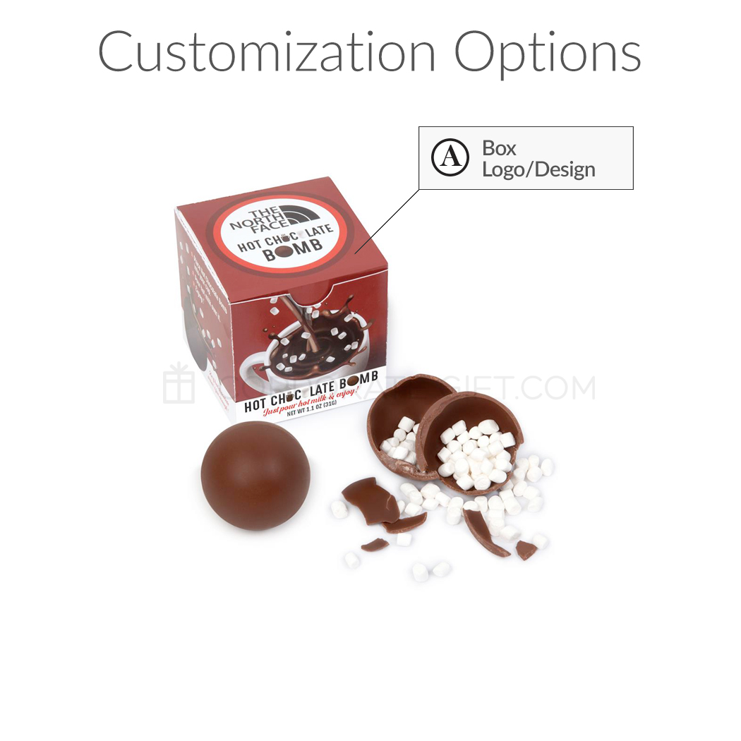 $50 one-time setup fee. Price includes hot chocolate bomb gift set and a full-color custom gift box. A virtual mock-up will be sent out for approval prior to processing.