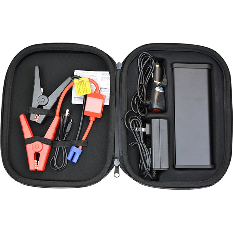 • Kit includes jumper cable clamps, micro USB cable, AC adapter, car adapter and user manual, all conveniently housed in a sleek black case
