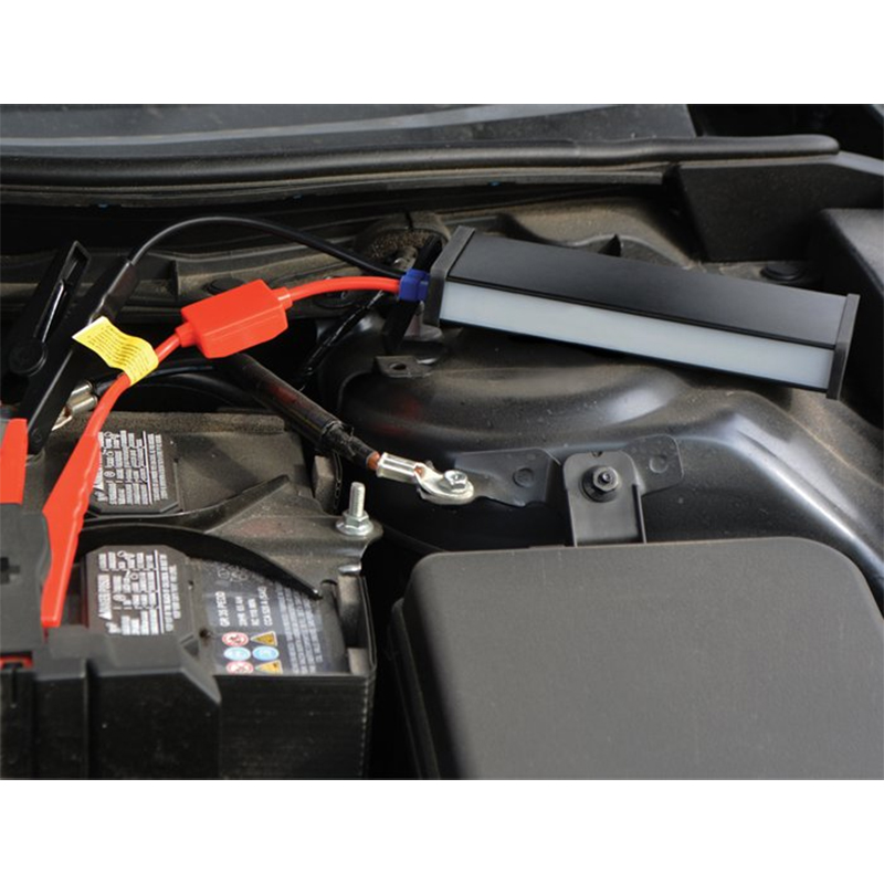 High capacity power bank features a powerful 10,000 mAh Grade A battery capable of boosting car, motorcycle, or recreational vehicle engines.