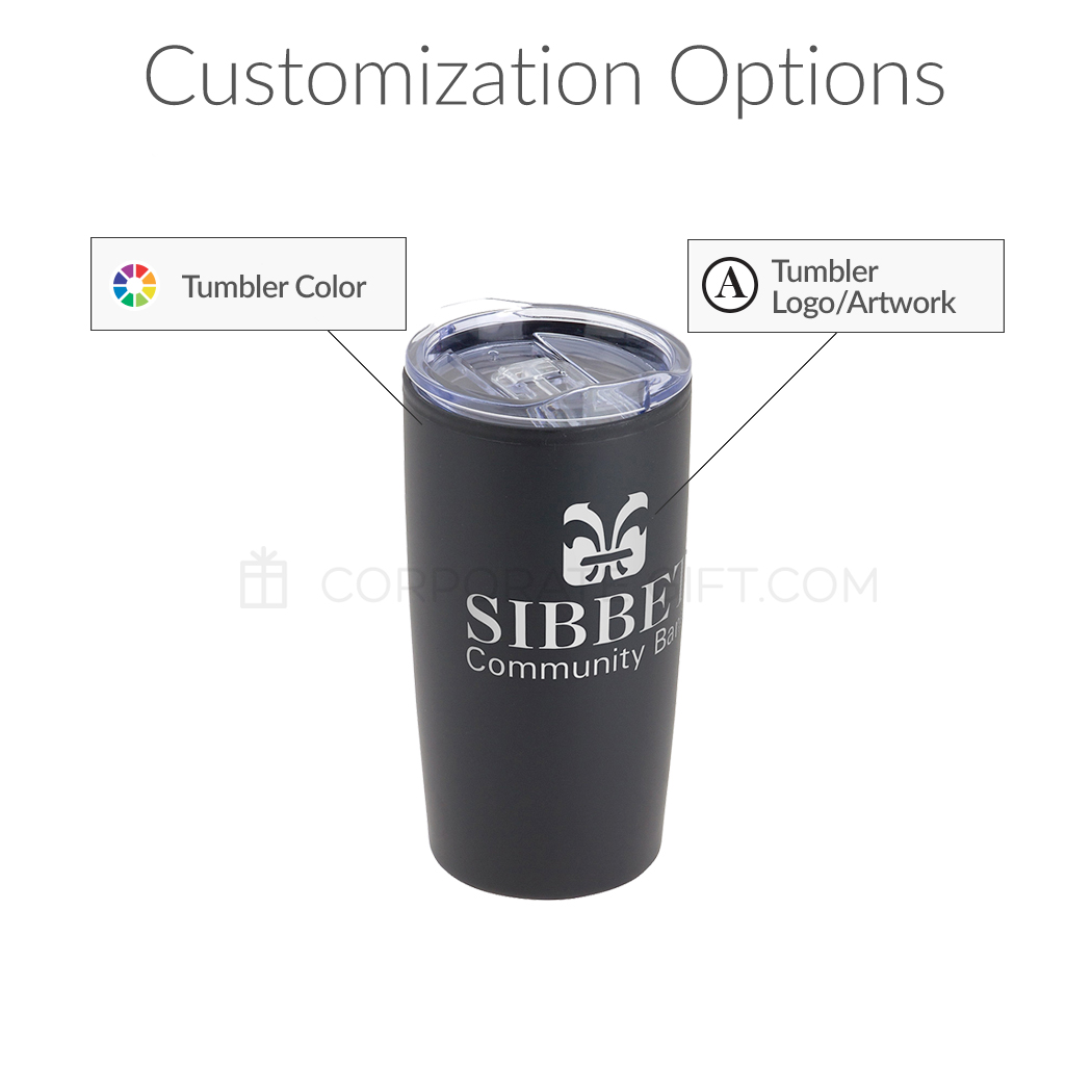 $60 one-time setup fee. Price includes tumbler and a one-color imprint in one location. A virtual mock-up will be sent out for approval prior to processing.