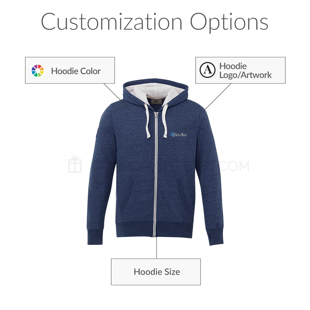 $55 one-time setup fee. Price includes hoodie and an embroidered imprint in one location. A virtual mock-up will be sent out for approval prior to processing.