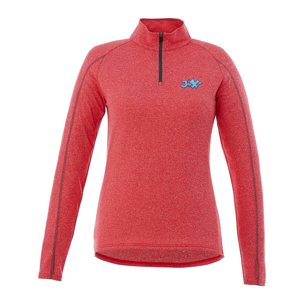 The snag resistant Taza Knit Quarter Zip is a 100% micro polyester cross dyed jersey knit with a moisture wicking, anti-microbial finish. Available in women's sizes, the contrast front zipper and stitching on the sleeves add visual appeal to the versatile Taza, which works equally well over a polo, woven or tee. Other cool features include thumb exits in the sleeves and an earbud cord guide.