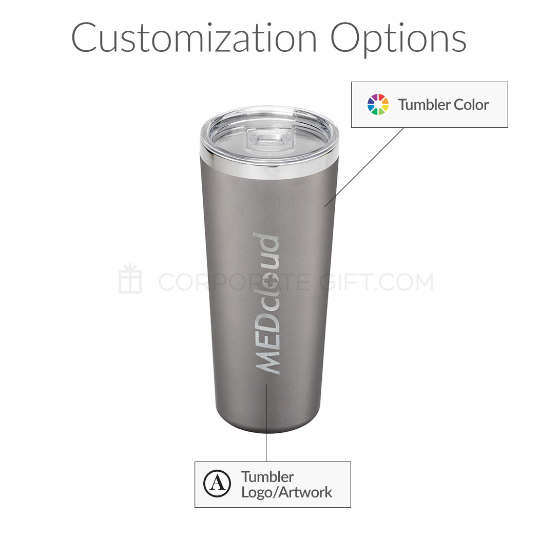 $55 one-time setup fee. Price includes tumbler and a laser imprint in one location. A virtual mock-up will be sent out for approval prior to processing.